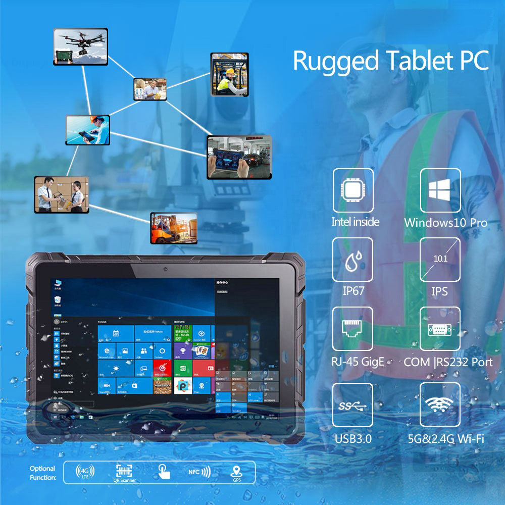 Powerful 10.1 inch x5-Z8350 Quad-Core Windows 10 Industrial IP67 Rugged Tablet PC with RS232 COM